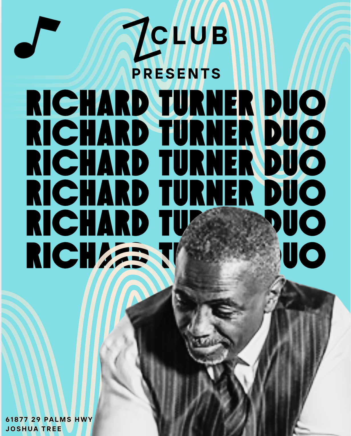 February 28 @ 7:30 pm - 10:00 pm Richard Turner Duo Z Club Joshua Tree 61877 29 Palms Hwy., Joshua Tree, CA, United States
